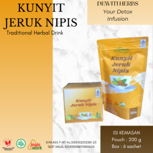 Minuman herbal instant yang terbuat dari kunyit, jeruk nipis dan gula